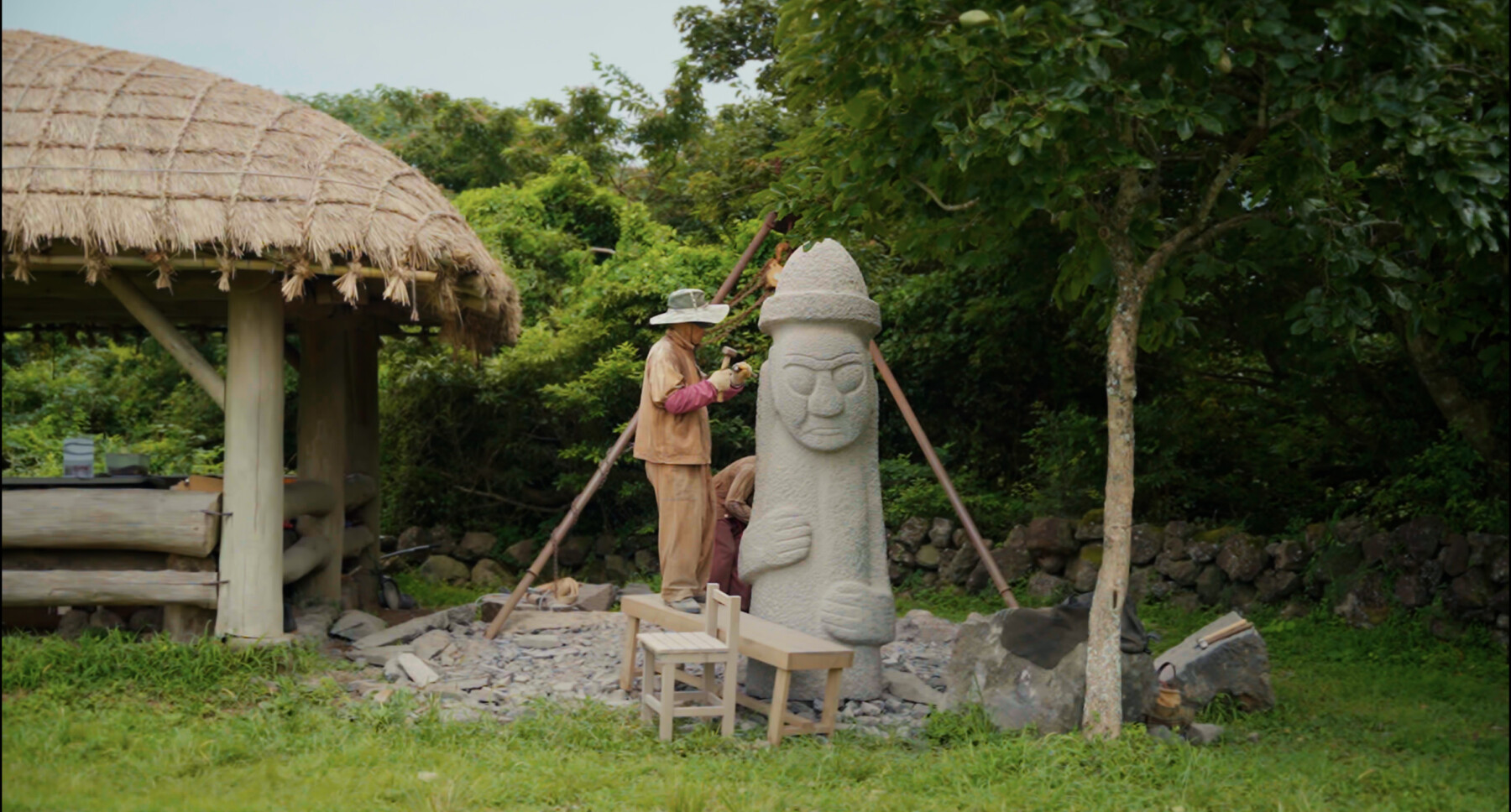 The completion of a single Dolhareubang demands time, and I wanted the audience to feel the visceral passage of that time. I framed the shots to continuously feature the workshop space, allowing the audience to witness the background change with the shifting seasons and weather. The editing pace is intentionally long and loose, reflecting the reality that any creation is the sum of countless layers built from moments of quiet patience and endurance. Furthermore, the craftsman's words are used sparingly within the film, as less said lead to greater resonance.