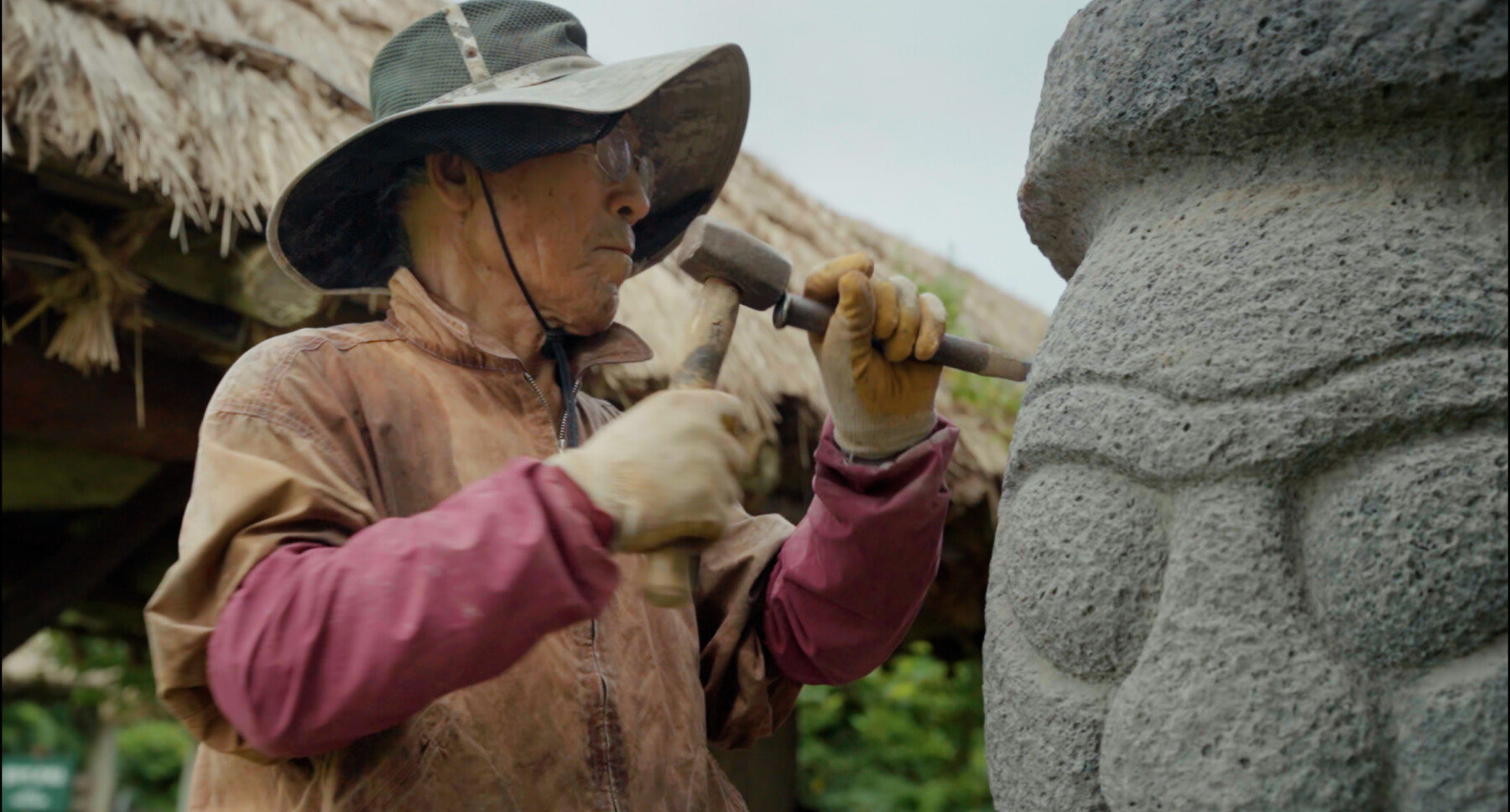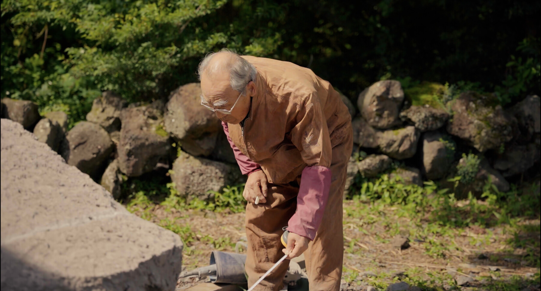 I found myself at an impasse, consumed by the question: "Can I truly continue making films and art?" As an artist who must also survive within society, these were deep, existential concerns. This crisis led me to Song Jong-won (90), a master stone craftsman famous for sculpting Dolhareubang (Jeju's iconic stone guardians). When I first encountered him, my primary question was simple: "What is his enduring motivation to keep creating these stone figures?" I began visiting his workshop every week. I discovered that Mr. Song, despite growing up in an era when finishing middle school was difficult, had gone on to major in English literature and become a teacher. Yet, he eventually became so absorbed in stone craft that he quit his formal career. For six months, my camera captured Mr. Song Jong-won as he meticulously completed a single Dolhareubang.