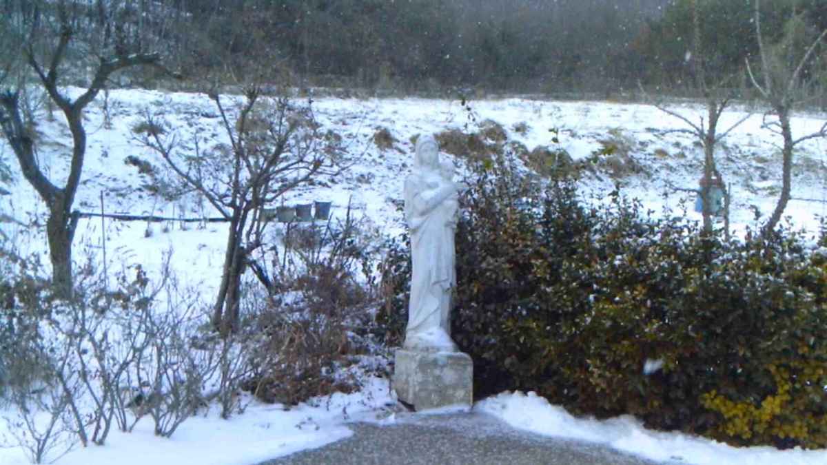 텅 빈 거리, 같은 자리에 평소대로 담배를 피우러 나온 사람들, 그들의 뒤로 유령인지 사람인지 모를 새 푸른 존재가 우뚝 서 있다.