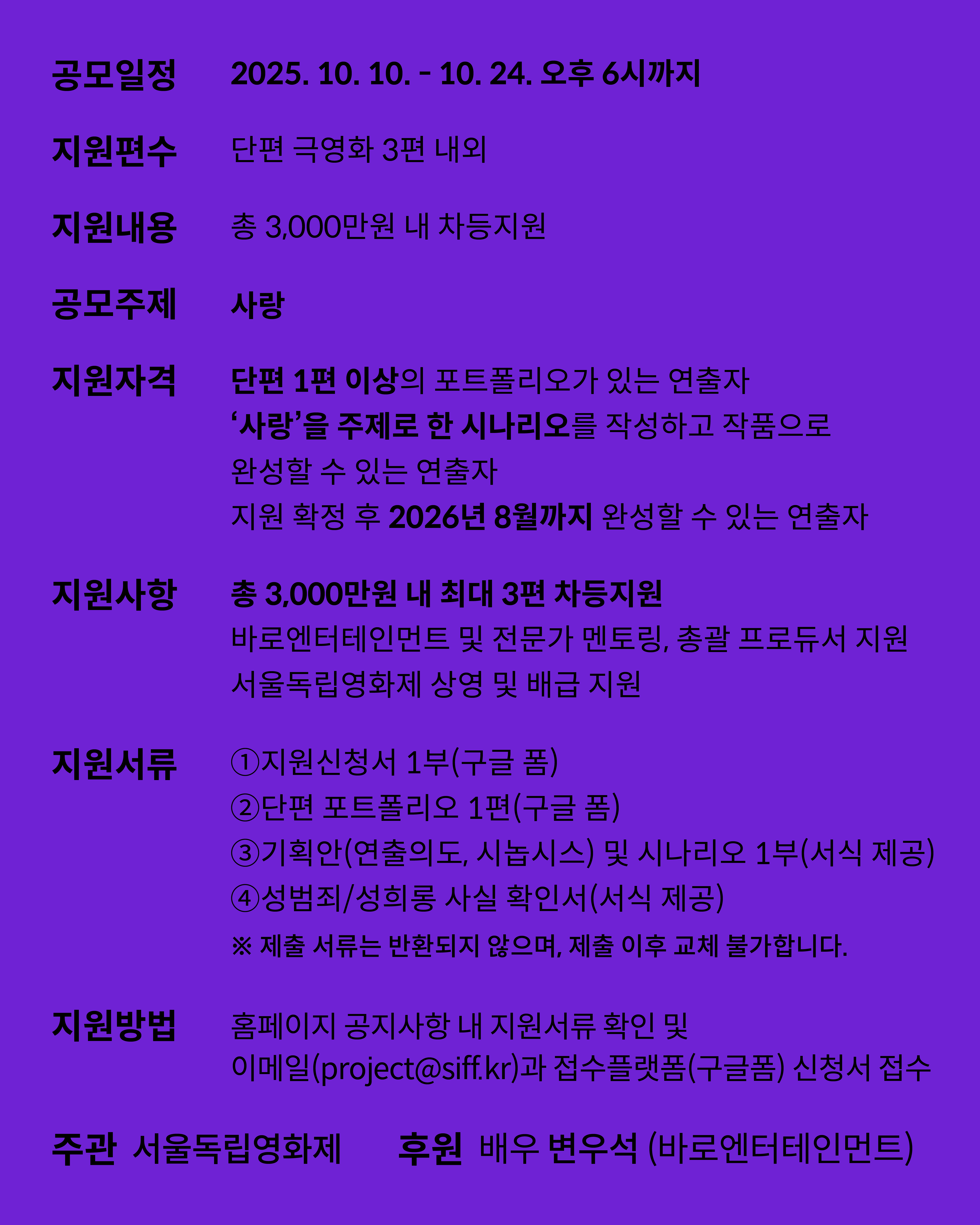 립μν μ μμ§μ νλ‘μ νΈ ‘SIFF X λ³μ°μ: Shorts on 2025’ 곡λͺ¨ μμμ